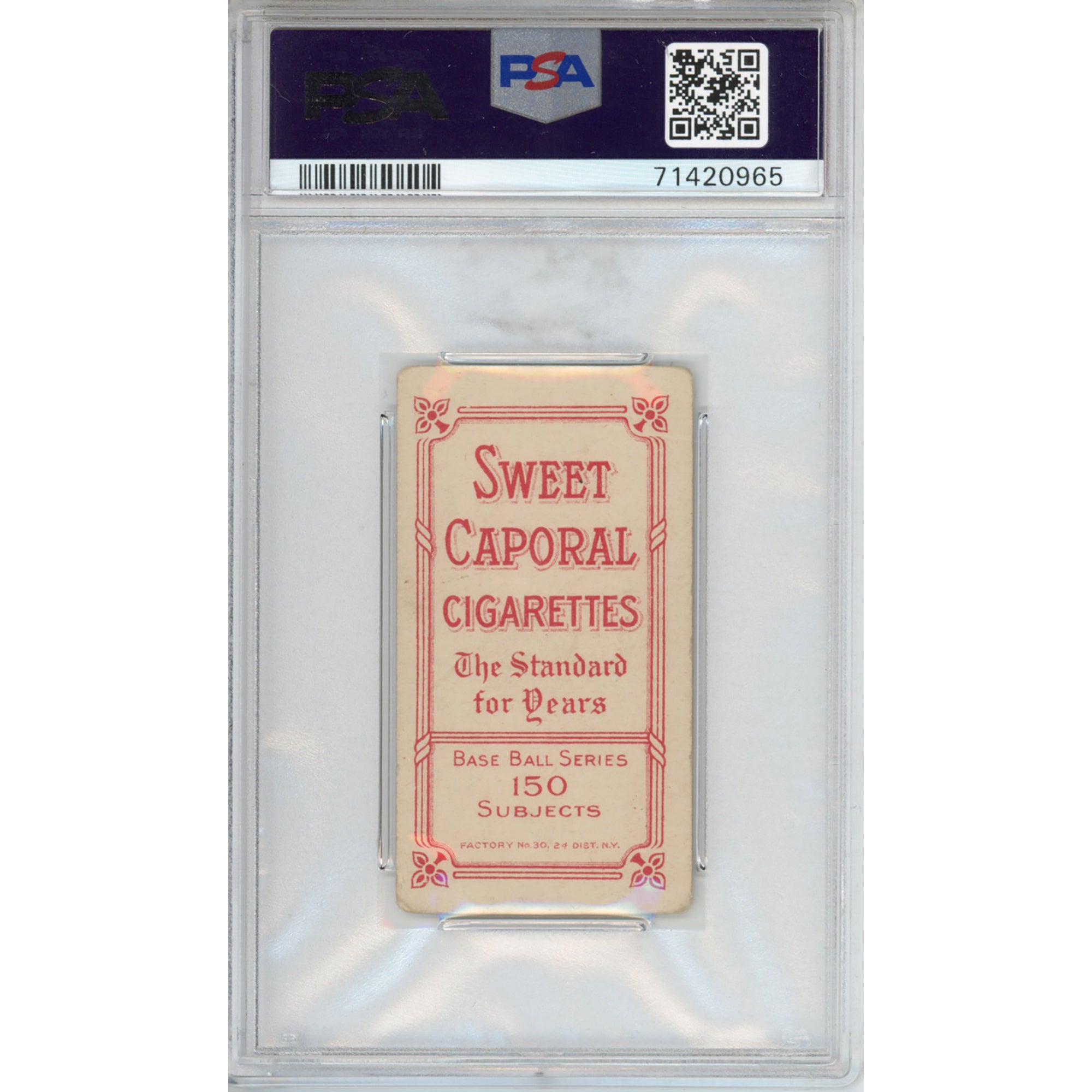 Ty Cobb's influence on Major League Baseball is enduring, marked by a career that epitomized skill, dedication, and tenacity. His .366 lifetime batting average remains a benchmark for hitting excellence, reflecting his ability to consistently perform at the highest level. Cobb's aggressive style of play and intensity on the field set him apart from his peers, earning him admiration and respect despite occasional controversy. Beyond statistics, Cobb's impact extended to the development of the game itself, influencing strategies and player development for generations. His legacy as a Detroit Tiger and baseball icon continues to resonate, reminding fans and historians alike of his unmatched contributions to America's pastime. Offered is a 1909-11 T206 White Border tobacco card featuring the now iconic "Portrait - Green Background" pose of baseball legend Ty Cobb. This card displays a "Sweet Caporal 150/30" reverse with a factory 30 caption. The front displays beautifully in this lower grade copy, which has been authenticated and encapsulated "Authentic - Altered" by PSA/DNA.