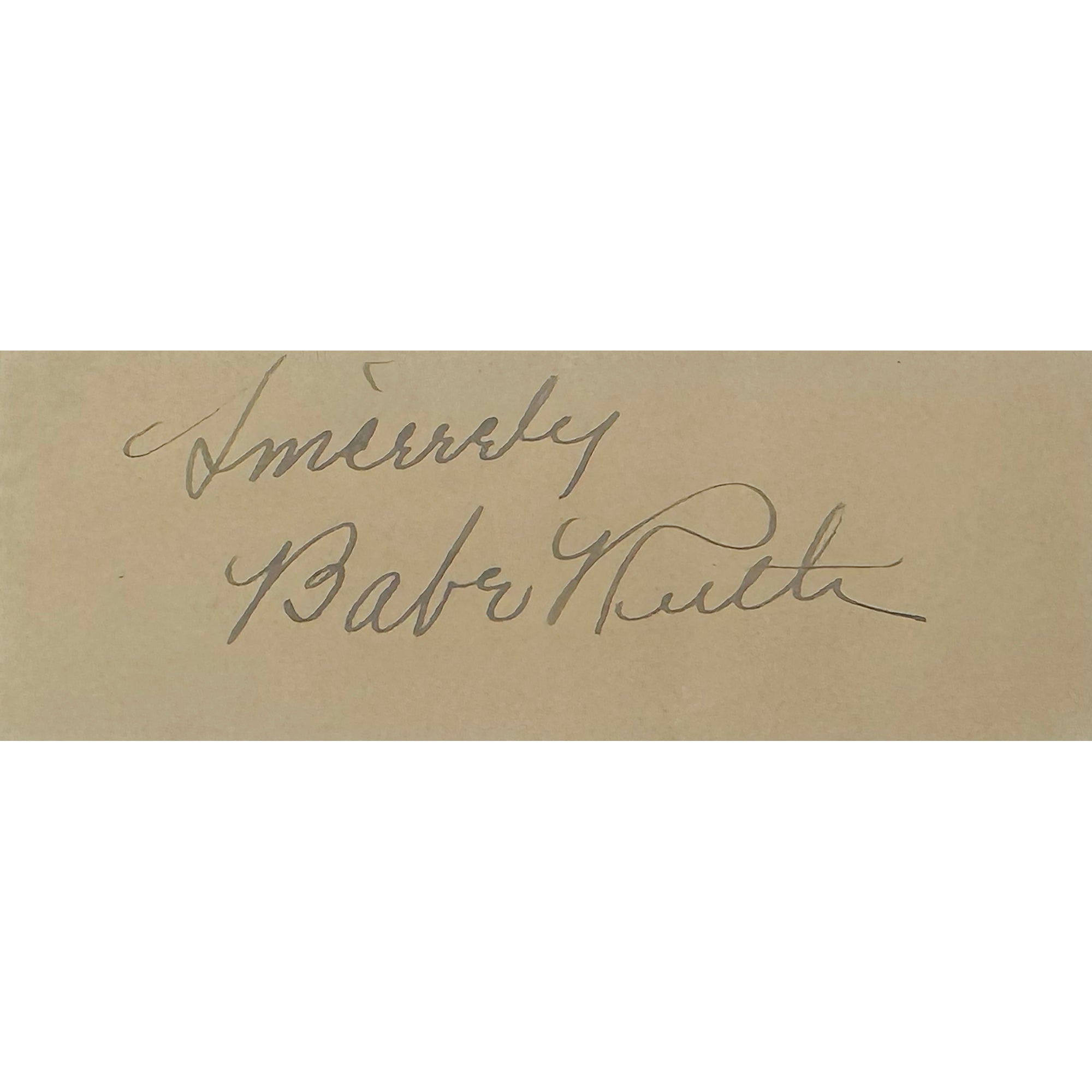 Babe Ruth, nicknamed "The Sultan of Swat" and "The Bambino," was an American professional baseball player widely considered the greatest to ever play the game and one of America's most iconic sports heroes. He revolutionized baseball, ushering in the "live-ball era" with his prodigious home-run hitting power. RuthÕs 1927 season, which featured 60 HRs amongst its accomplishments, is one of the greatest seasons in Baseball history. Ruth famously converted from pitcher to hitter early on in his career, which is attributed by him being the all time WAR leader with 182.6. Additionally, he held a record for 29 2/3 consecutive scoreless innings pitched in the World Series, a mark that lasted until 1961. Ruth hit 714 career homeruns (which still ranks 3rd all time), and is widely considered the greatest player in the history of the game. Babe Ruth has signed this cut, and added the coveted "Sincerely" inscription. It features a strongly legible Graphite Pencil autograph from Ruth and comes with a full Letter of Authenticity from JSA Authentication.